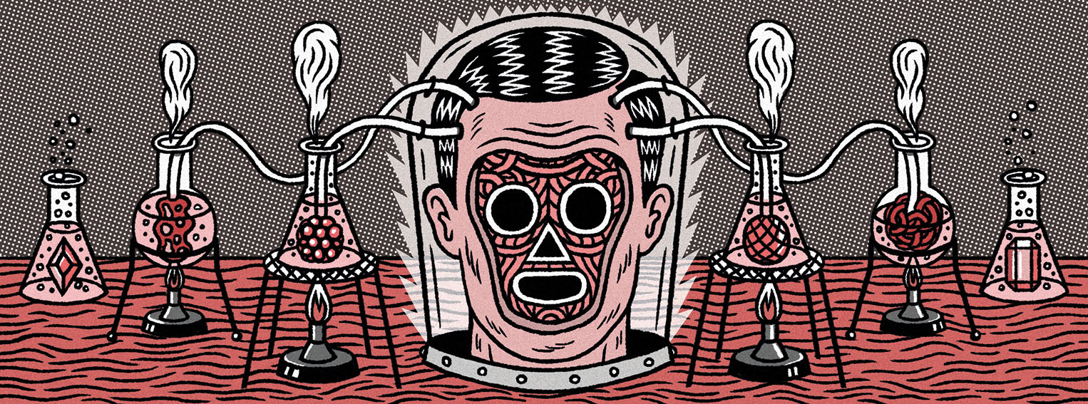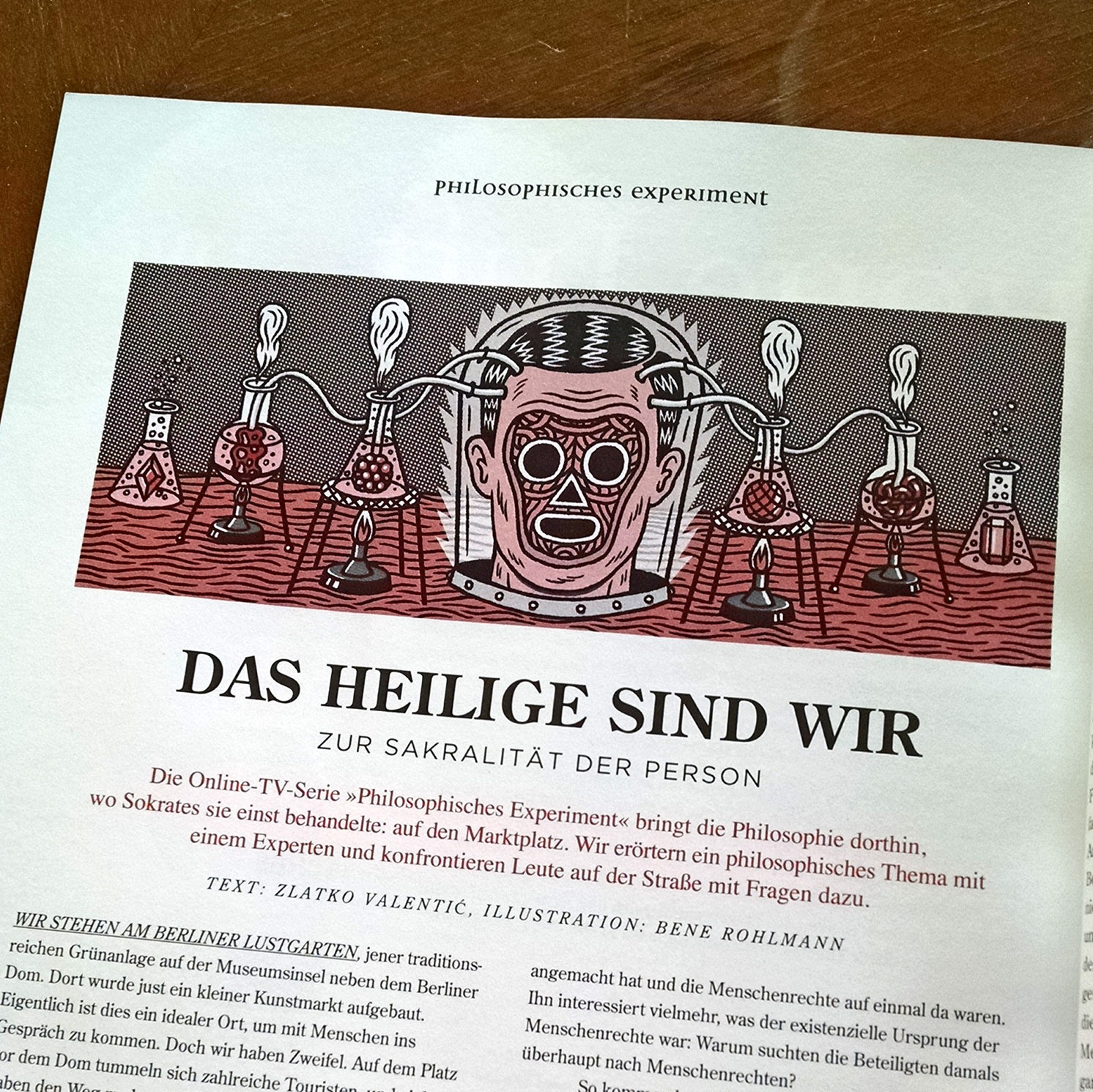 Header illustration for a series of texts about philosophical experiments for 'Hohe Luft' magazine. Year: 2014